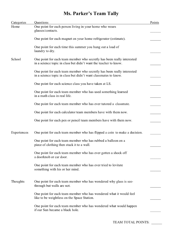 Click here to download a PDF: science team tally