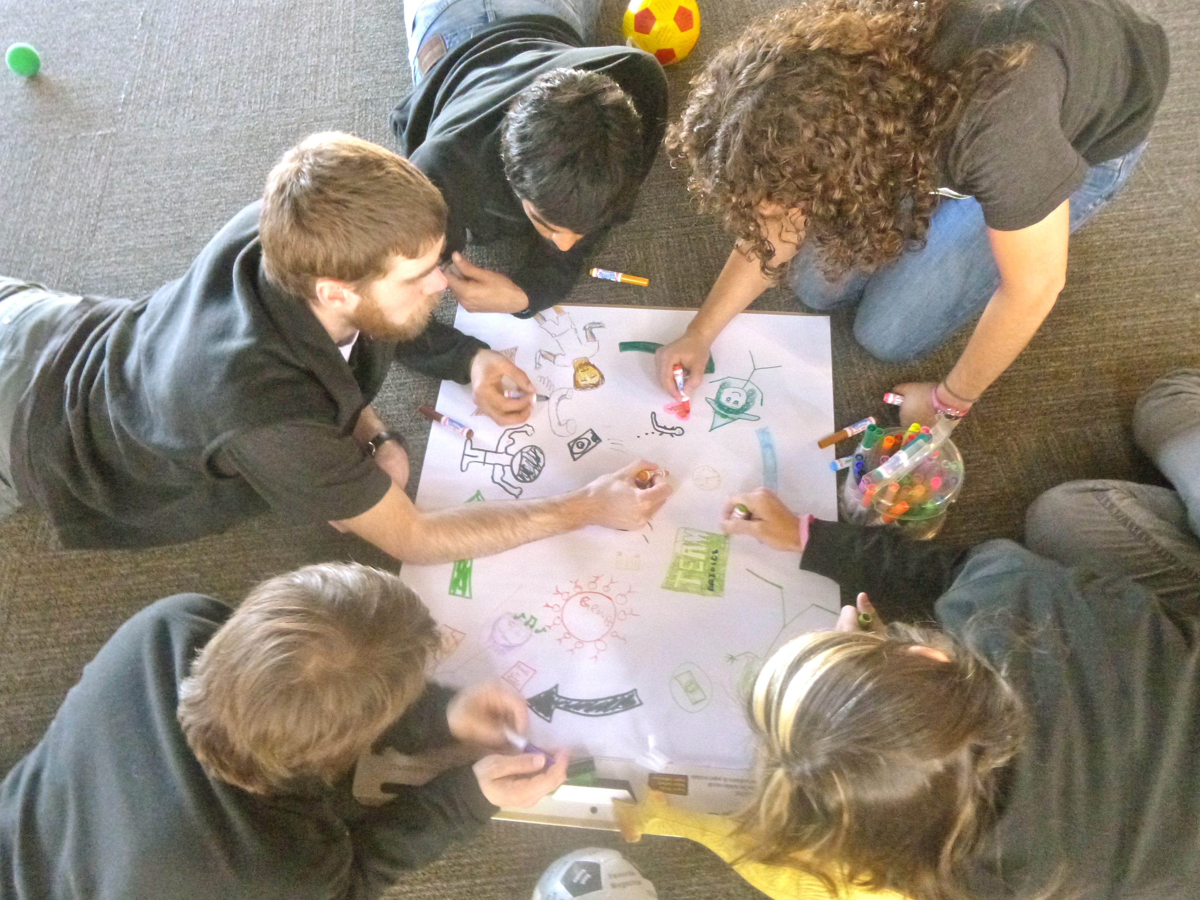 - Ask each person to choose a marker or crayon (this increases involvement, by making sure everyone has a tool for drawing/writing if they are inspired).