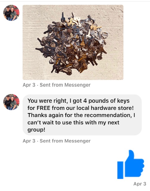 Over the last year I’ve received many messages and posts from workshop participants from Austin to Kalamazoo, with photos of boxes of keys and captions of “You were right! My hardware store had a whole box to give me!”